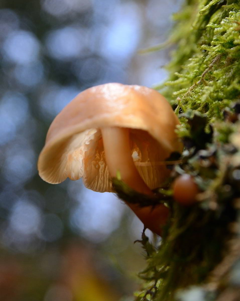 Il ne pousse pas forcément sur bois comme les champignons lignicoles, tout comme les mousses qui recouvrent les troncs. Il n'est pas rare de voir des champignons terricoles se développer en apparence sur bois (et inversement). Il suffit d'assez de substrat sous les mousses, comme ici, ou sur du bois très decomposé comme pour cet