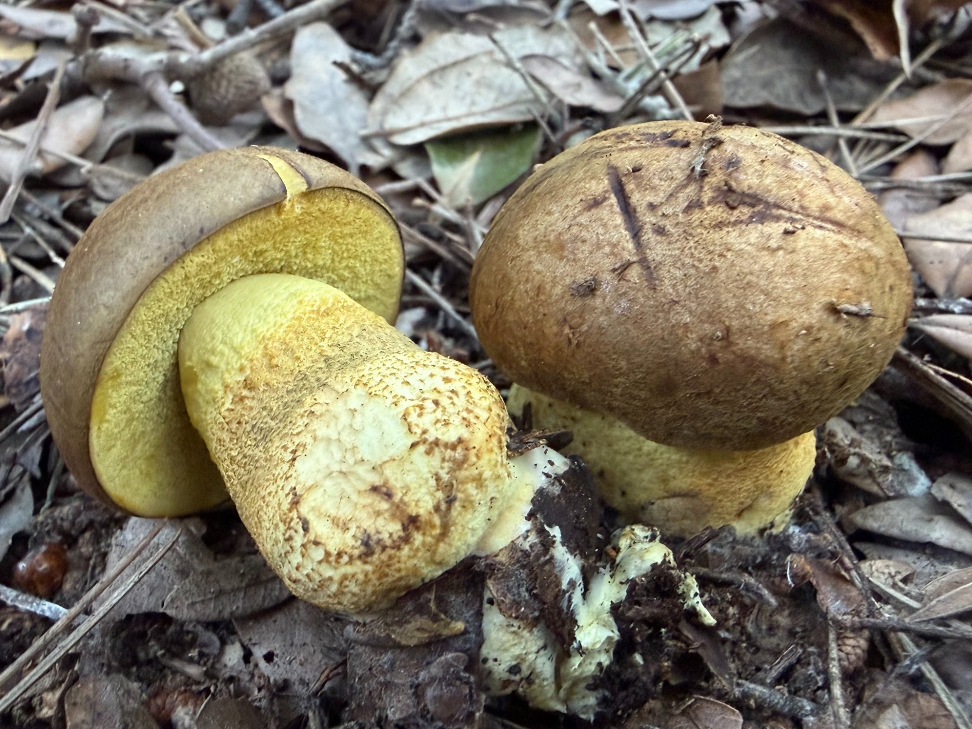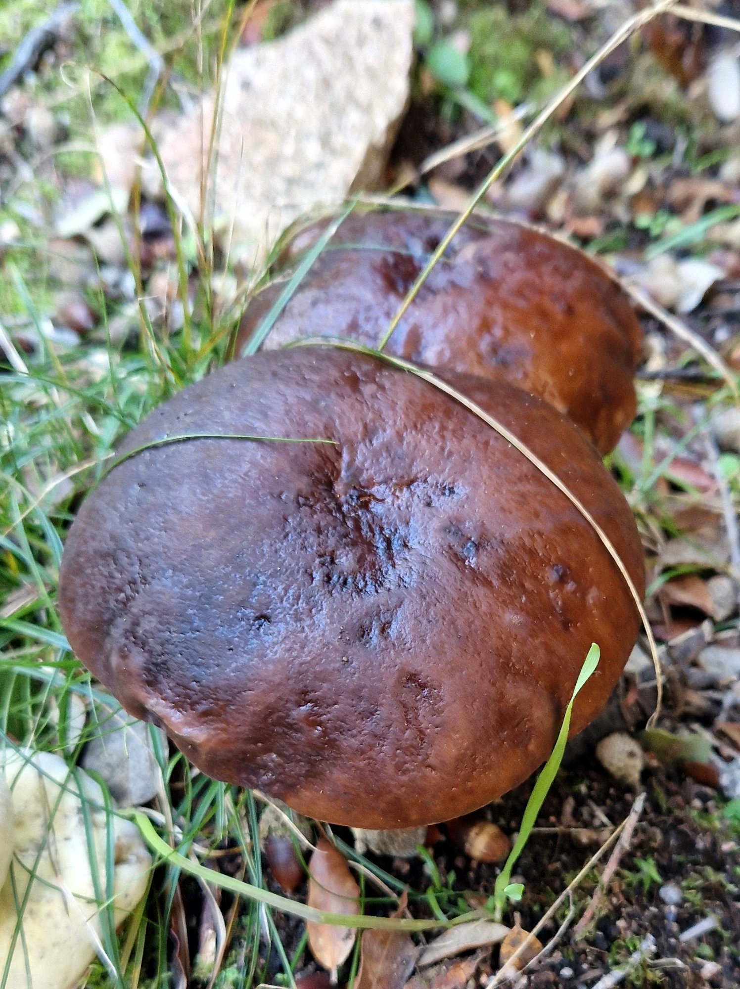 Le 18/11/23 : Le 18/01/24 : Espèce liée aux chênes verts et aux chênes-lièges, parfois difficile à distinguer de Leccinellum corsicum, ce dernier étant toutefois exclu en l'absence de cistes ou d'hélianthèmes, ce qui est le cas des exemplaires ci-dessus.