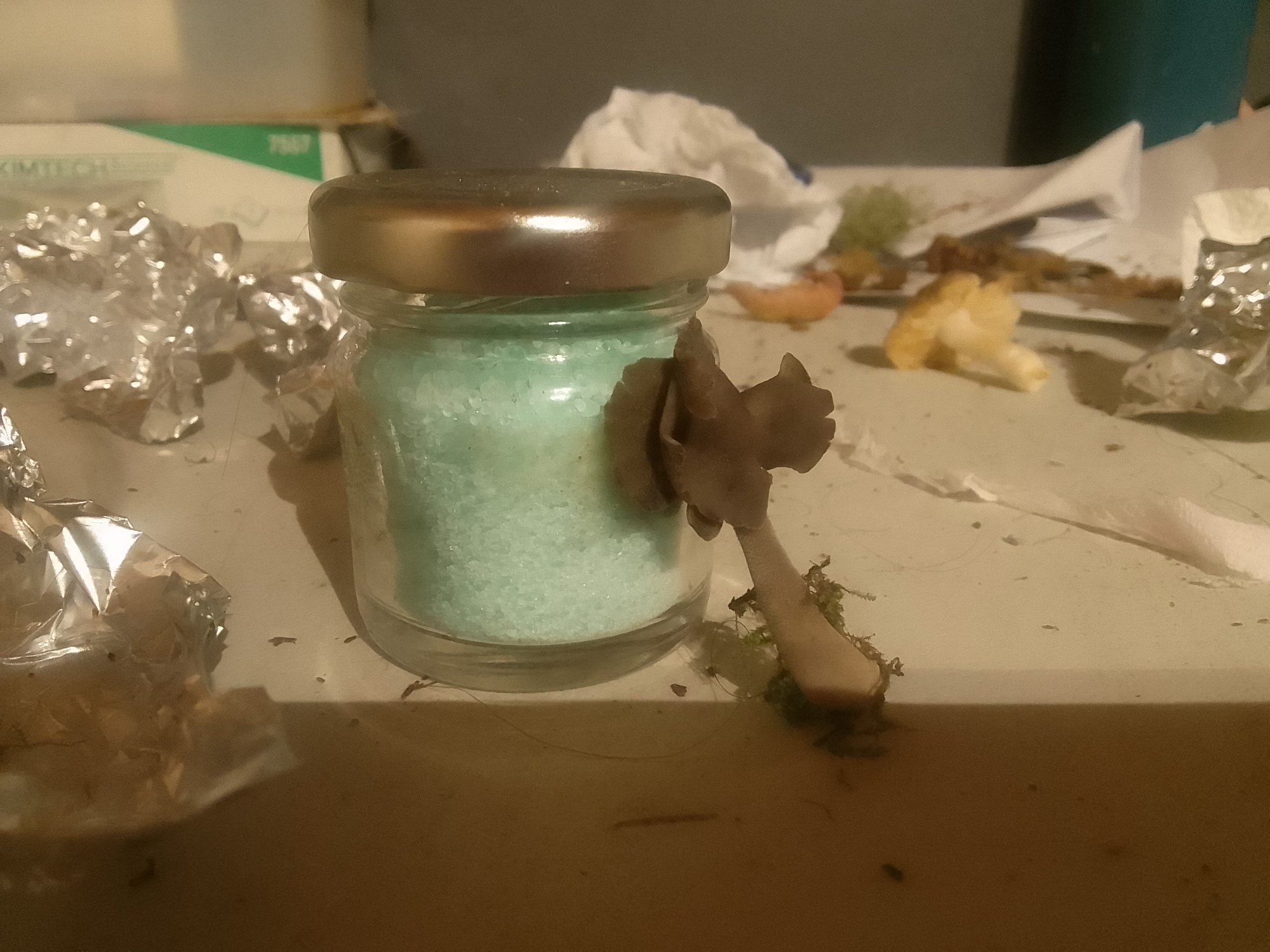4-5 exemplaires il y a quelques semaines (6), 1 ce matin. Spores observées la fois dernière et ordinaires pour le genre. Une grosse goutte au milieu avec de toutes petites gouttes à coté.