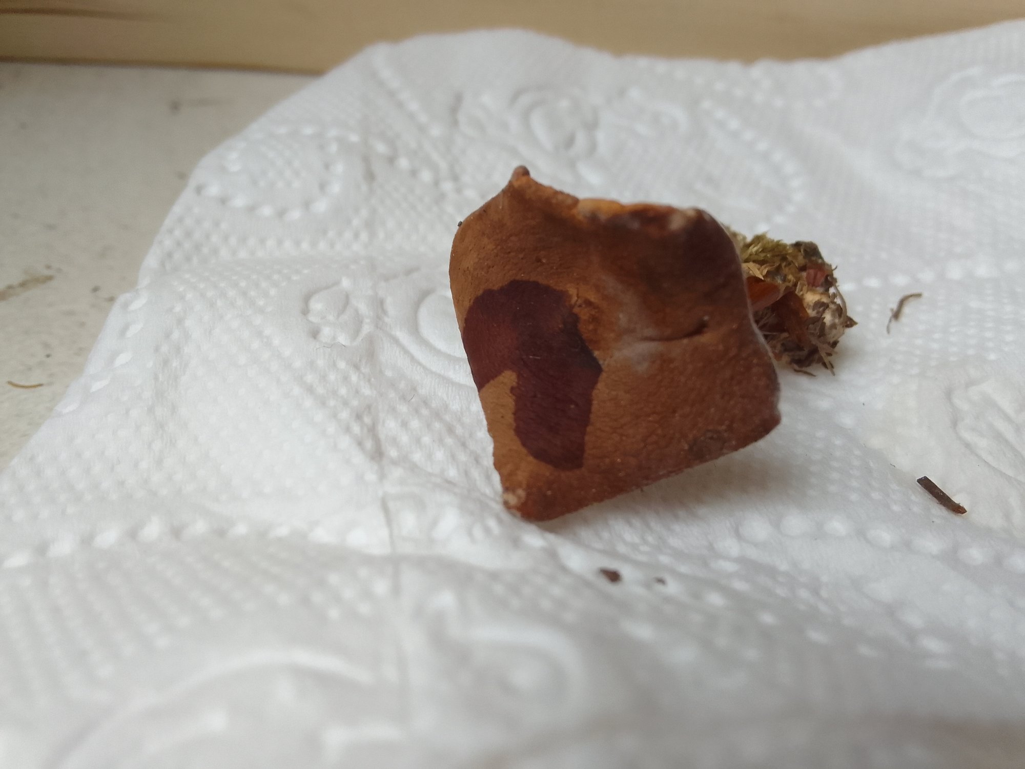 J'aurais peut-étre du mettre en DDD mais je m'interessais d'abord à cette réaction. Depuis, j'ai croisé un site italien où la réaction apparaît bien plus franche sur des costatae. Le pied de cet exemplaire était brun saumoné sans feutrage mycélien blanc. D'oû le séchage et l'essai avec le KOH.