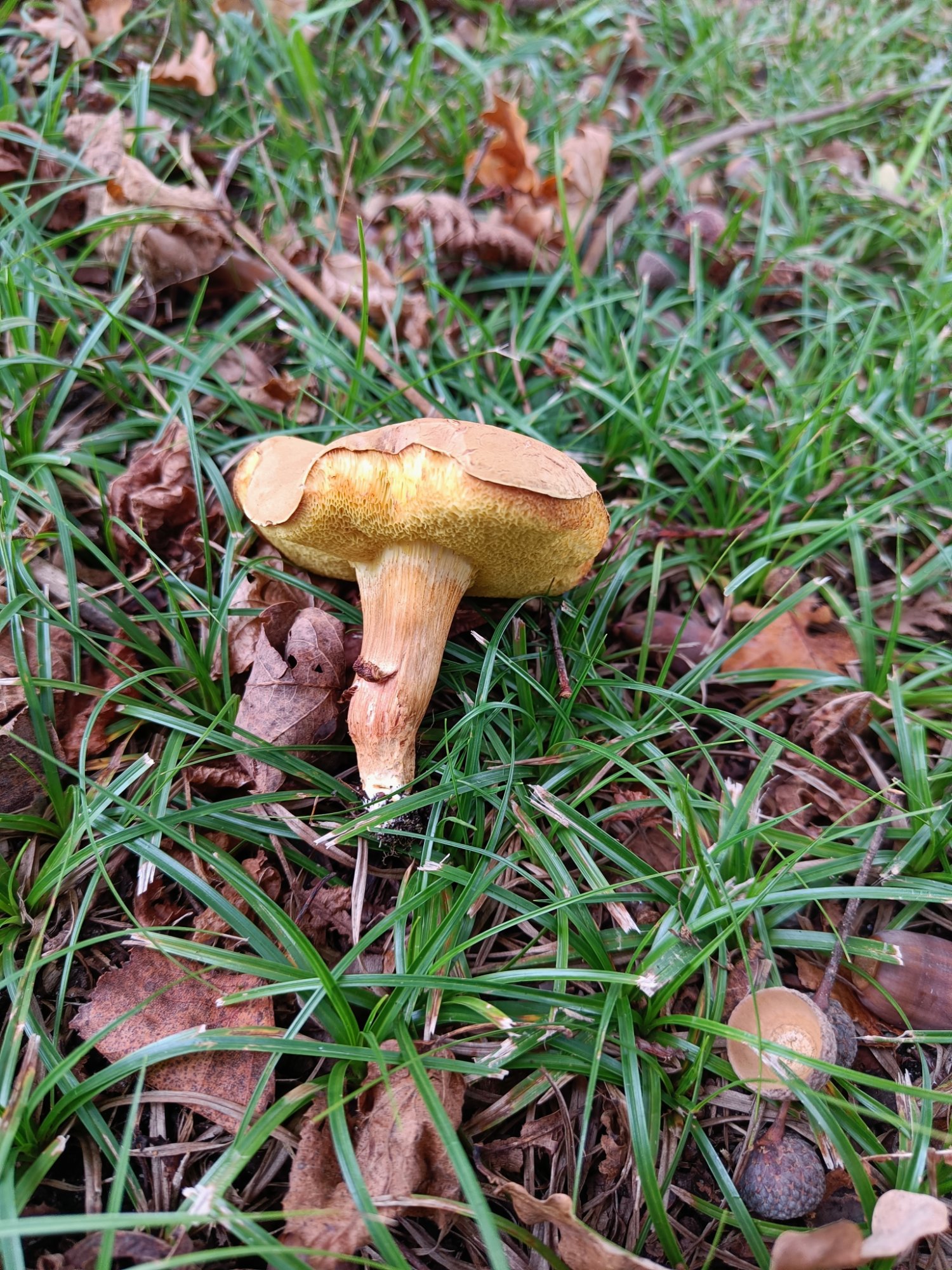 Je pense soit à Xerocomellus ripariellus soit à Suillus bovinus. Pour le premier, les photos du GEPR collent mais sur MycoDB le chapeau est nettement plus rougeâtre.