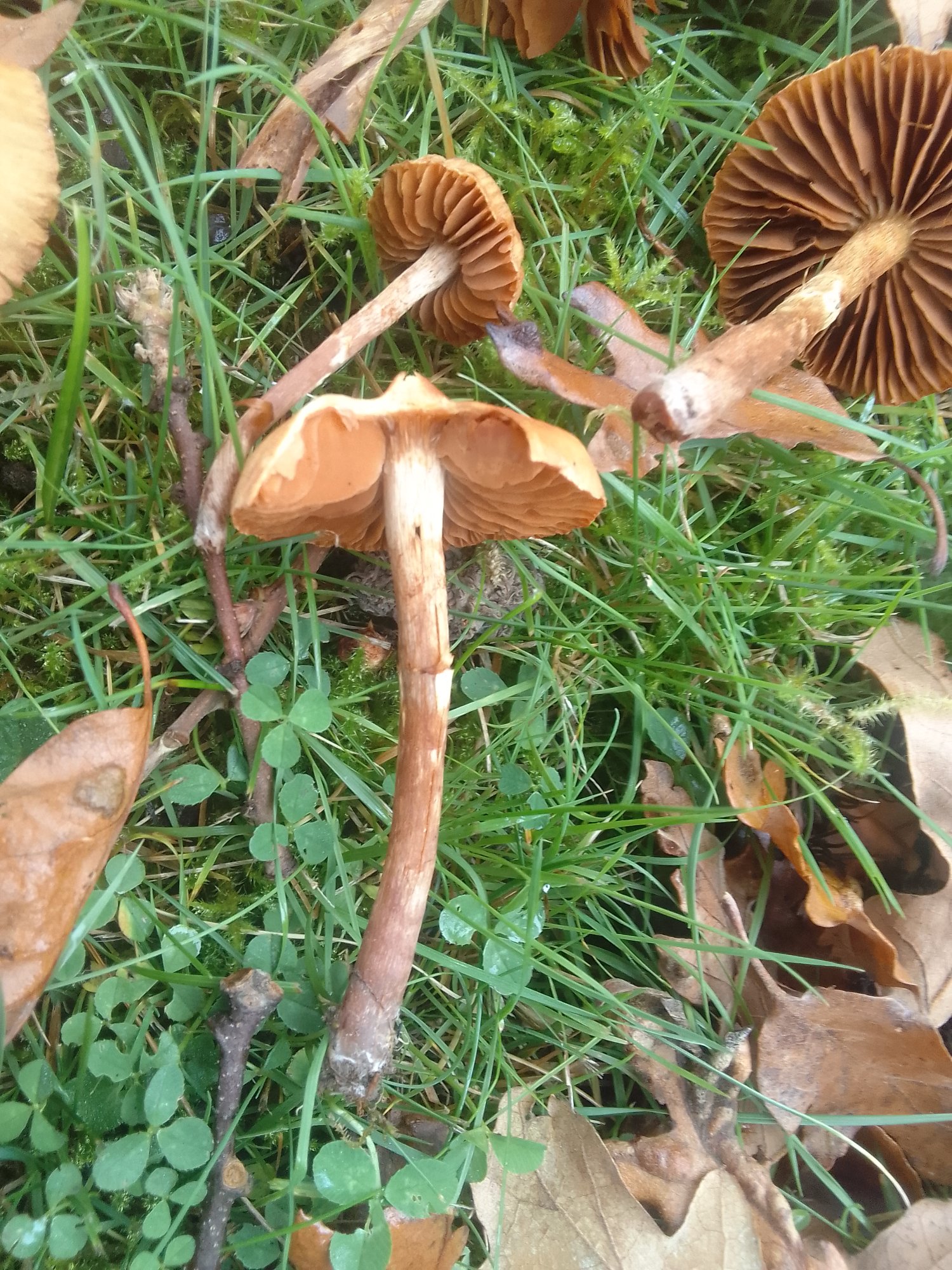 Grégaire. Presque fasciculés.Chapeau jusqu'à 6cm. Feutré non visqueux. Semblant un peu hygrophane quand même. Brun chamois clair vif. Marge un peu lacéré, se cannelant assez remarquablement avec l'âge.
