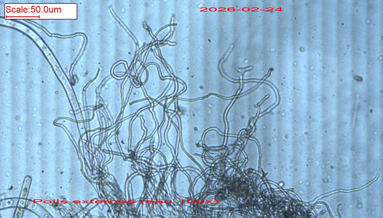25 févr. 2026, 10:59Pomlos a écrit : Salut, la dernière fois que je me suis penché sur ce "genre" de problème j'en ai conclu que sans microscope ça serait difficile. Néanmoins l'habitat semble pencher pour P. p. en 1790, à moins que les spores ne soient tronquées aux extrémités ?Effectivement, le nombre et la taille des guttules par spore aideraient, de même que l'aspect droit ou crépu des poils externes de la coupe.