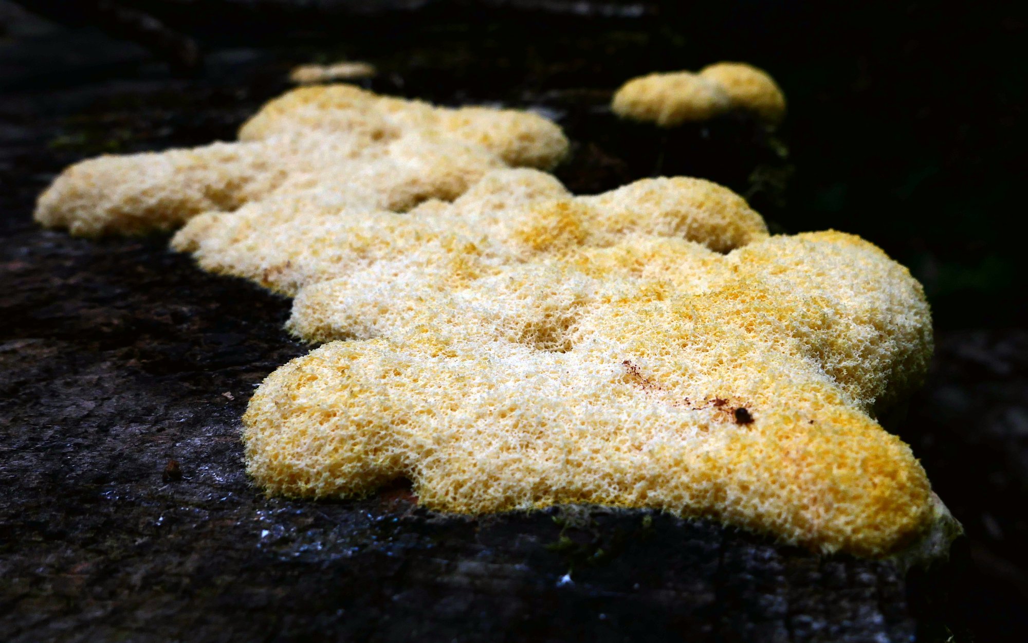 On voit rarement d'aussi grandes plaques (près de 40 cm). Agrandissez, on voit presque le plasmode bouger... Ce 20/08/21 en forêt de Carnelle (Val-d'Oise), au milieu d'un désert mycologique.