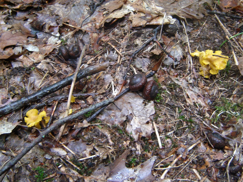 - biotope : chênes plantés (suite à une coupe il y a 15 ans environ). Je suis incapable de vous donner l'espèce exacte car je ne la rencontre que sur des parcelles plantées, les feuilles sont plus grandes que le chêne "sauvage". Les glands sont plus gros et beaucoup moins allongés, presque aplatis. Présence à quelques mètres de nombreux érables plantés également.