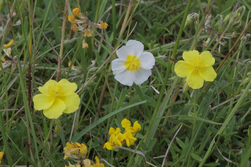Sur la photo trois, la fleur blanche doit correspondre à Helianthemum apenninum, pour les jaunes une vue des sépales pourrait séparer Helianthemum nummularium de Halimium lasianthum.